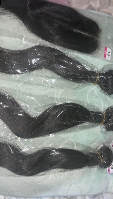 Straight Bundles Human Hair with Closure Is Natural Black Color,Thick and Bouncy,True Length and Weight,Full and Thick,Shedding Free, Tangles Free, No Smell, Shiny, Bouncy, Can Be Curled, Bleached.