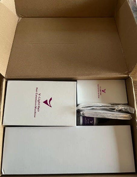 V-Light tools are suitable for V Light dedicated hair extensions and PU hair pieces. If you want to use V-light system to install hair bundle, please ensure the safe operation: before the glue solidifies, do not drop glue on the scalp or directly contact the skin to avoid allergies or the burn caused by the light.The light of our hair extension machine is UV LED light, The ultraviolet wavelength of V light is 395 nanometers. Short-term exposure will not cause any damage to the scalp.