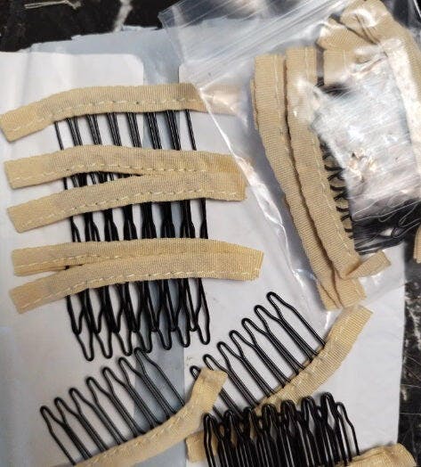 10pcs Long wig comb with 7 teeth Black wire clips hair full lace wig combs snap cap hairpiece accessories styling tools