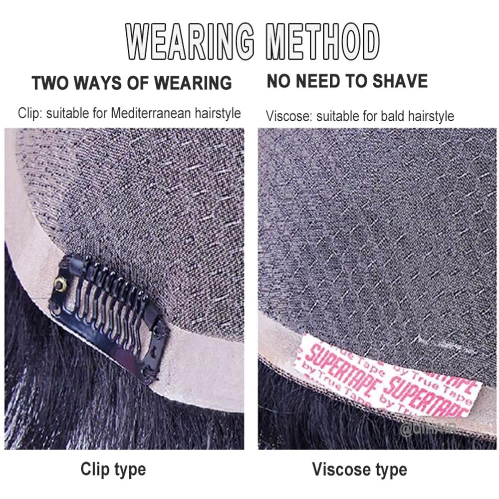 Easy to Trim and Style: Straight hair easy to style, can be restyled, strengthened, curled, dyed, etc. When you curl or straighten the mens toupee human hair, please control the temperature under 250F. The curly shape is easy to store and transport, and the hair wig for men can restore straight after washing.