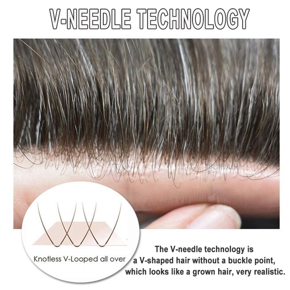 Default cap size of this thin skin toupee for men is 8”X10”, big enough for most head size, also can be cut to small size according to your demand.Knotless,Hair looks like growing out of the scalp.100% Human Hair Piece.Perfect solution for hair Loss.