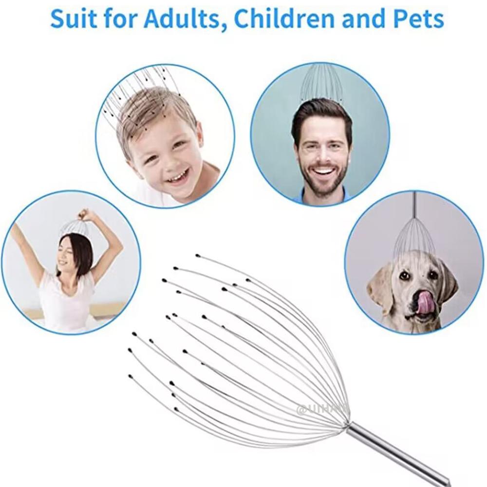 Material Safety: Special 20 Fingers Scalp Massagers with rubber beads over each spindle that glides over your scalp producing a euphoric feeling every time you use it.Great for people with sleep problems and anxiety, helps relieve headaches and against migraines.